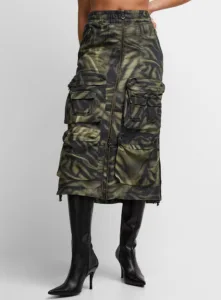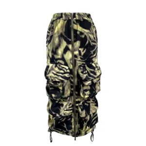 Esta falda larga para mujer se inspira en los pantalones cargo. Con fit holgado presenta un estampado de camuflaje inspirado en las cebras en color verde desteñido. Las cremalleras, los cordones y los múltiples bolsillos de gran tamaño refuerzan el aspecto utility.
