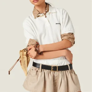 Esta minifalda de denim presenta en estilo informal y el aire chic desenfadado común a toda la colección. El tratamiento lavado del denim confiere a la prenda un efecto desgastado, mientras que el logo bordado remata el modelo con un toque icónico.